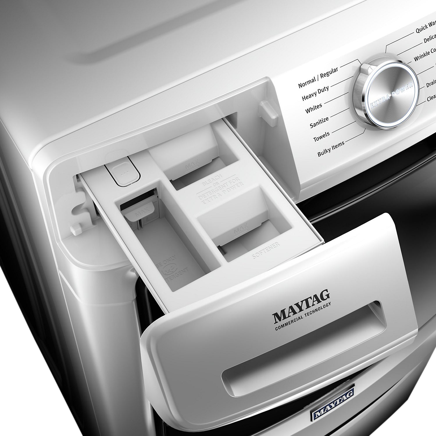 For the toughest loads of laundry, this Maytag front-load washer boasts 5.5 cubic feet of capacity and tackles both stubborn stains and crusted-on messes. Have some extra-smelly sports equipment or fabrics in need of some additional care? The Heavy Duty cycle has the muscle required to restore your clothes back to their sparkling best. Still need some extra oomph to get the job done? Just hit the Extra Power button for an added pre-wash cycle and higher wash temperatures. For small jobs, Quick Wash blasts through your laundry at a blistering 15-minutes per load.