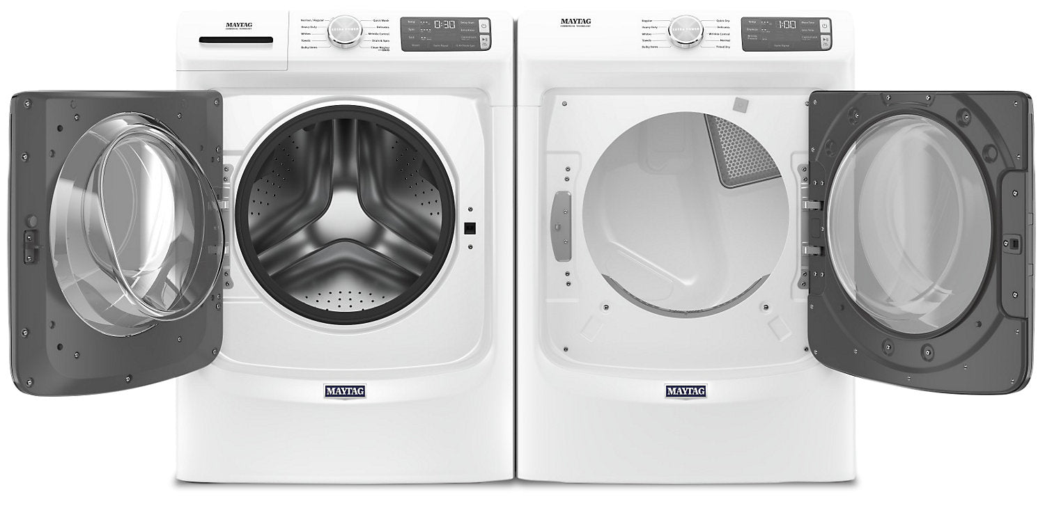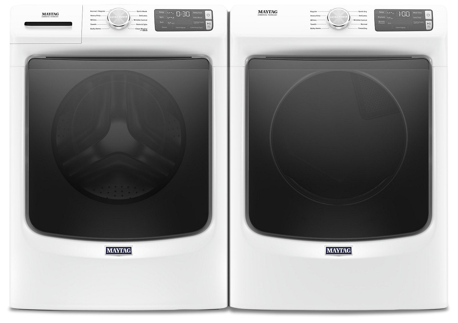 Maytag Front-Load 5.2 Cu. Ft. Washer with Extra Power and 7.3 Cu. Ft. Gas Dryer - White|Laveuse frontale 5,2 pi3 avec Extra Power et sécheuse gaz 7,3 pi³ Maytag - blanches|MAFL563G