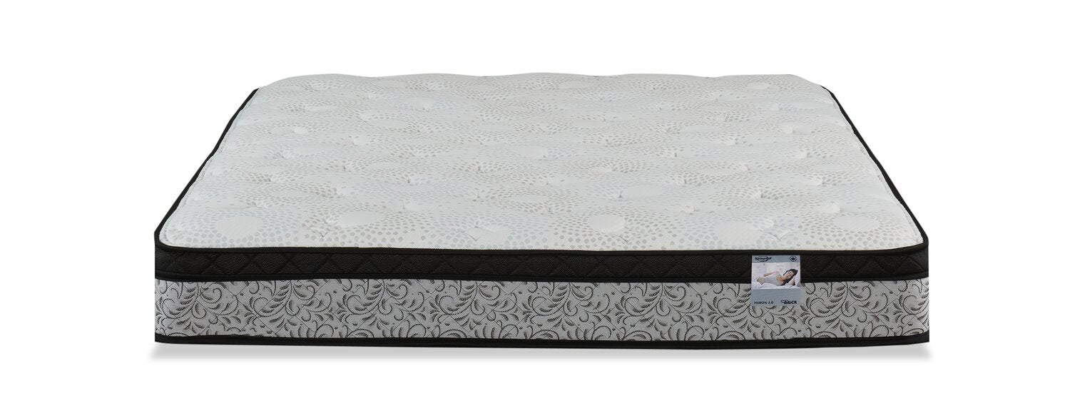 Treat your tired mind and body to a dreamy slumber with the Springwall Huron 2.0 Eurotop mattress. A cozy combination of convoluted foam and comfort foam work in harmony to contour to your body and provide plenty of pressure relief for sore muscles. Stay at an ideal temperature all night long thanks to the gel foam that offers a cooling feel. Plus, full coil edge support is integrated in this mattress to maximize the sleeping surface area for a supportive and secure rest. Make bedtime your favourite time with the Springwall Huron 2.0.