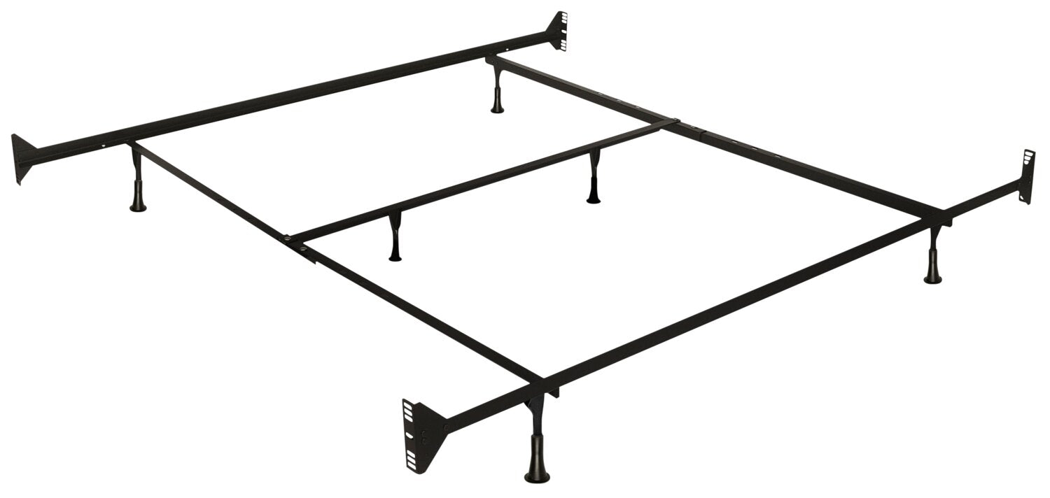 Keep your mattress in tip-top shape with this bed frame from Julien Beaudoin. This base offers a resilient place to rest yourself and your bed thanks to its metal construction. This bed frame expands to accommodate two boxspring sizes with ease and features plastic glides to provide more stability for your sleep area. Plus, it comes with brackets to securely fit your headboard and/or footboard. With a centre rail to ensure even support across your sleep set, this metal bed frame is ready to help you snooze peacefully.
