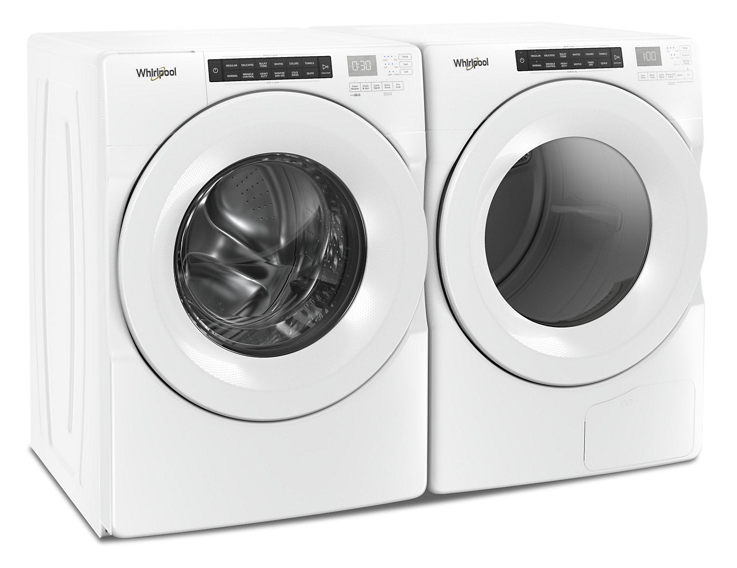 Whirlpool 5.0 Cu. Ft. Front-Load Washer and 7.4 Cu. Ft. Electric Front-Load Dryer - White|Laveuse chargement frontal 5,0 pi³, sécheuse électrique chargement frontal 7,4 pi³ Whirlpool - blanches|WHFL560H